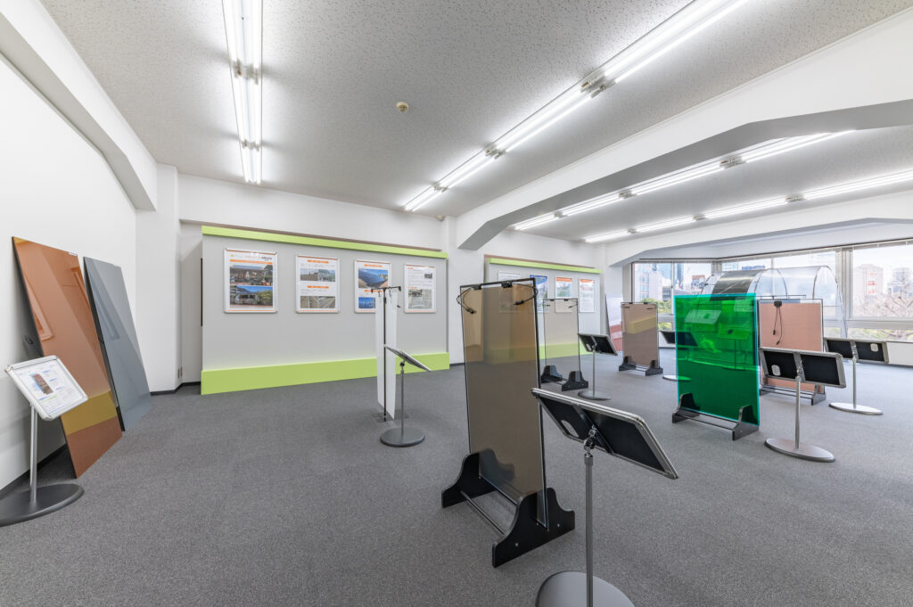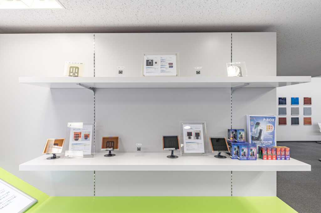 本ショールームはEFエナジーが運営しており、軽量・フレキシブル型ペロブスカイト太陽電池パネルや、建材一体型太陽電池(BIPV)など、同社が取り組む各種製品・技術の展示を行っております。